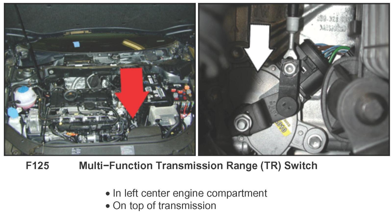 Component location: The Tiptronic switch is integrated in selector mechanism.