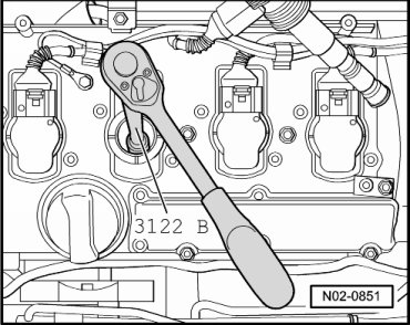 - Remove spark plugs using spark plug wrench (3122 B).