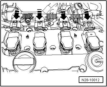 - Then place Puller (T10095 A) on ignition coils with power output stages and remove them.