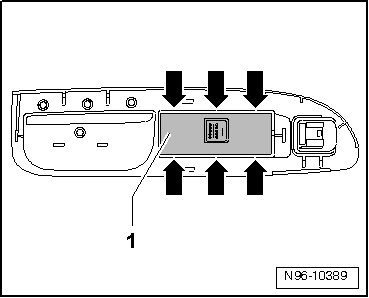 - Release retainers - arrows - and remove switch element - 1 - from grip trim.