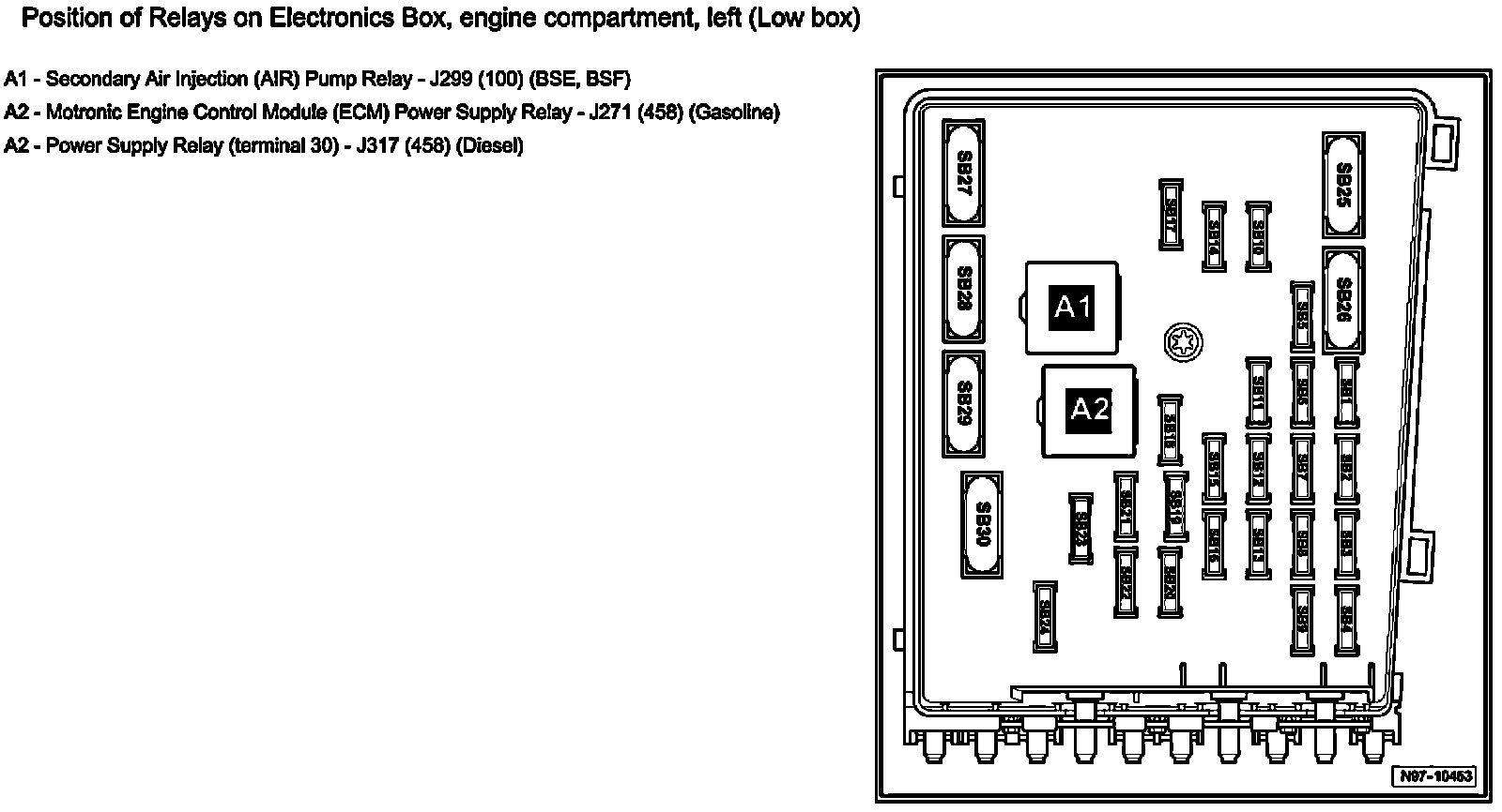 Position Of Relays On Electronics Box, Engine Compartment, Left (Low Box):