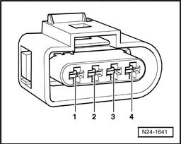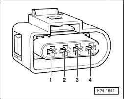 - Connect multimeter using adapter cables to terminal 4 of connector and chassis Ground (GND) for voltage measurement.
