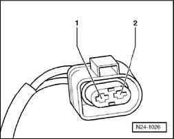 - Disconnect 2-pin harness connector to the respective camshaft adjustment valve -1-: