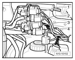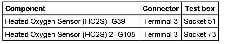 - Corresponding fuses on E-box in engine compartment, left side, of Oxygen Sensor (O2S) Heater -Z19- and Oxygen Sensor (O2S) 2 Heater -Z28- for Heated Oxygen Sensor (HO2S) -G39- and Heated Oxygen Sensor (HO2S) 2 -G108- must be OK.