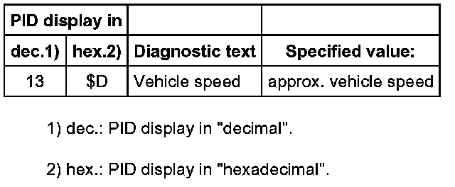 - Select the measuring value "PID 13 ($D): Vehicle speed".