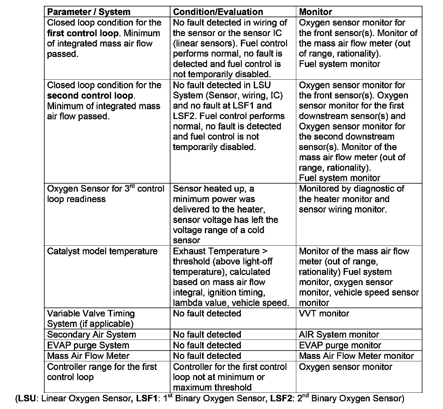 Parameters / Conditions For Closed Loop Operation On SULEV