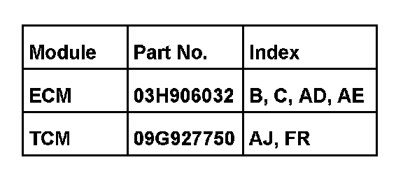 ^ Update the Engine Control Module using the Software Version Management (SVM) and the SVM Unit code as listed in the table shown.