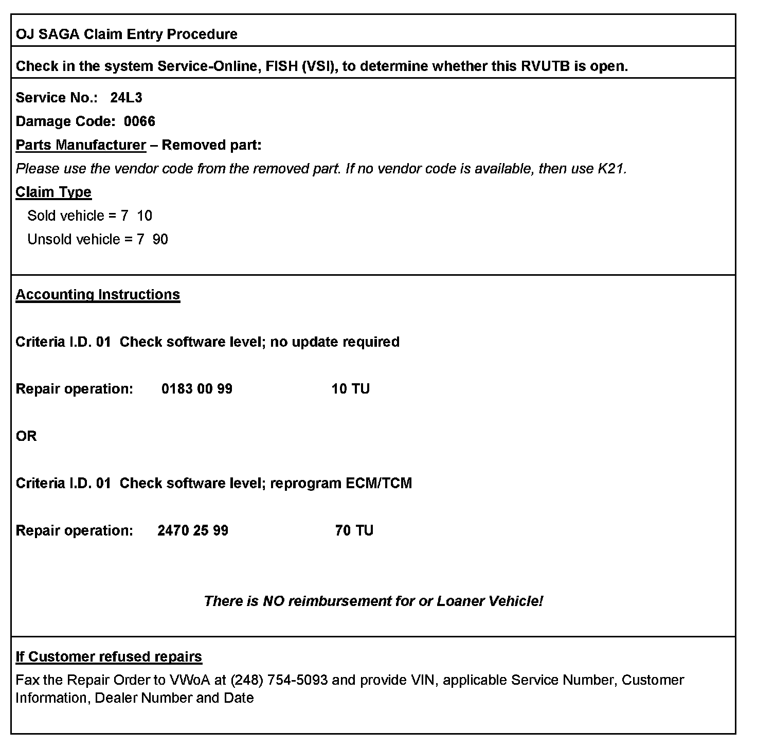 ^ Your dealership should place the vehicle owner on notice in writing, that their ECM was found to have been tuned, and that any damage caused by the tuning of the ECM (including any adverse emissions consequences) will not be covered by Volkswagen of America, Inc. warranties.