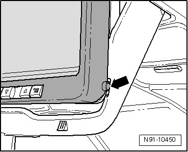 - Carefully pull monitor in - direction of arrow A - with hook (VAS 3370) until plastic pins disengage.
