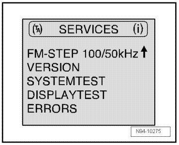 DISPLAY TEST = Test of LCD display (by selecting this menu item and by repeatedly pressing right rotary/push knob, various display areas are " optically highlighted" and be checked for malfunction and completeness)