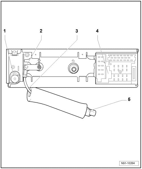• Multi-pin connector "2" for line out, telephone, CD changer. Refer to => [ Connector 2 Contact Assignment ]