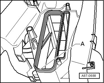 - With the heater core removed, check heating unit for soiling (via heater core opening - A -).