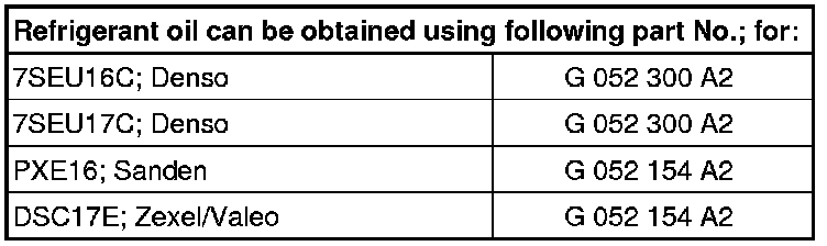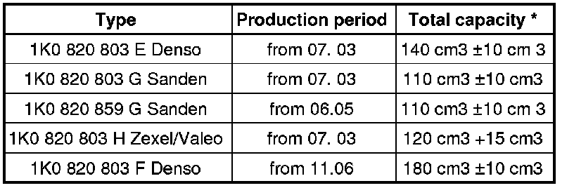 * This quantity of refrigerant oil is in a replacement A/C compressor and equates to the total capacity.