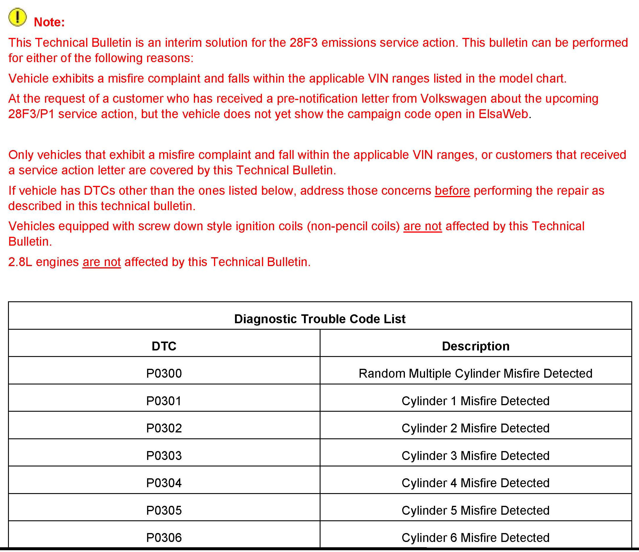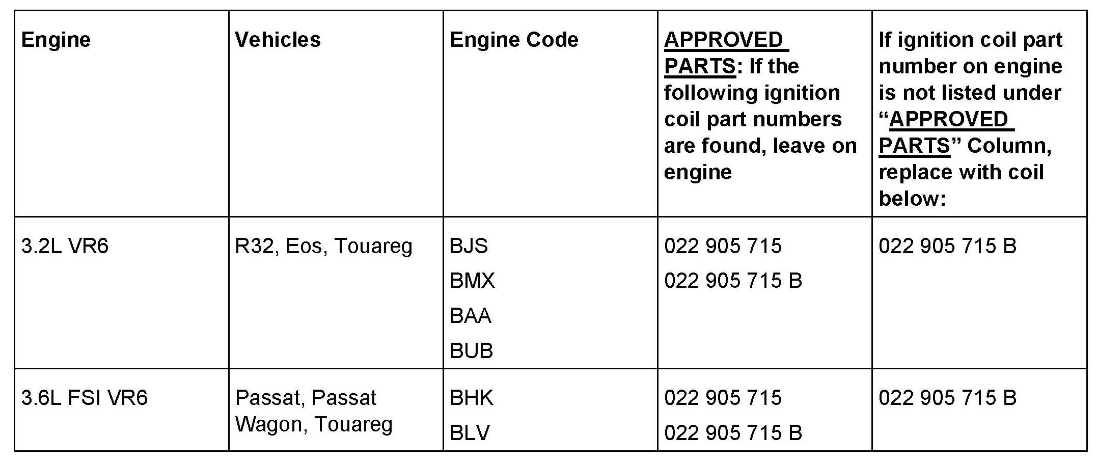 ^ Inspect and if necessary replace all other ignition coils (even from cylinders without misfire) as listed in the table below.