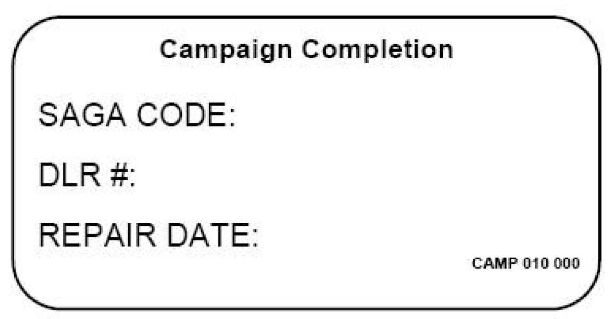 ^ In the United States and Canada, vehicles repaired under the 28F3 Campaign (or this interim Technical Bulletin) are required to be identified with a Campaign Completion Label (see below).