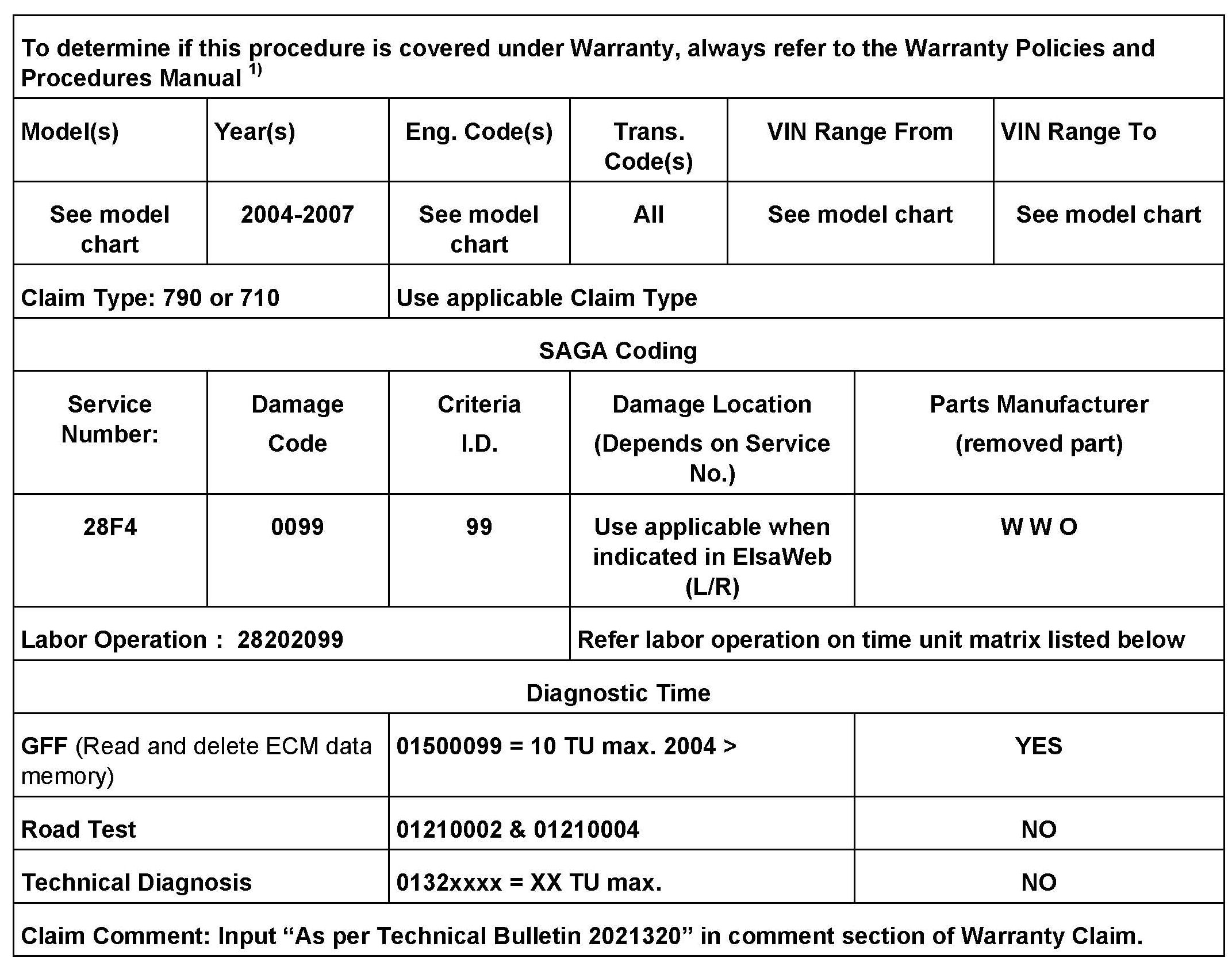 2021320 Supersedes T.B. Group 28 number 09-03 dated December 22, 2009 to remove vehicle applicability covered by 28F3 campaign.