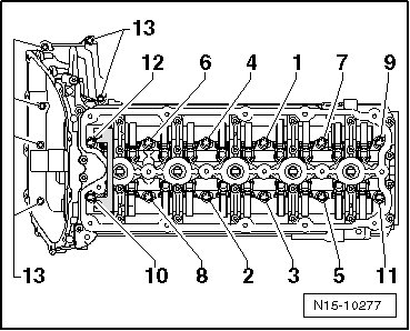 Tighten the cylinder head bolts - 1 through 12 - in the sequence shown as follows:
