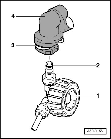 - Press the hose/line assembly - 1 - and seal - 2 - into the clutch master cylinder connection - 4 - until the clip - 3 - clicks into place.