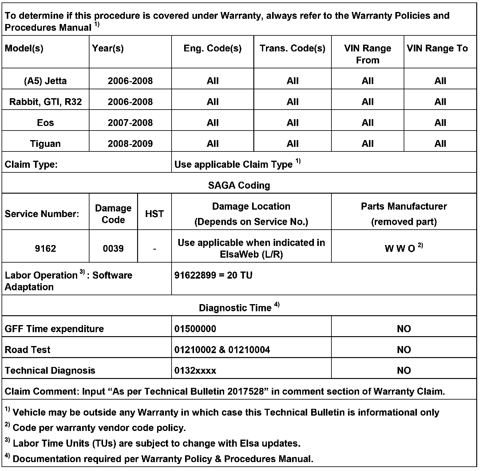 2017528 Supersedes T.B. Group 90 number 08-05 dated Aug. 1, 2008 to correct the technical diagnosis line of warranty table.