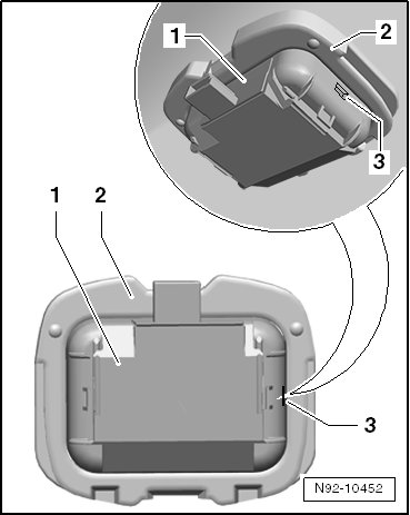 - Pry the Rain/Light Recognition Sensor (G397) - 1 -with a suitable screwdriver at the cut-out - 3 - from the retaining plate - 2 -.