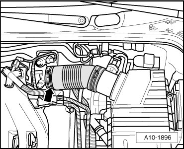 - Remove the air duct hose - arrow - from the Throttle Valve Control Module (J338) and position aside.