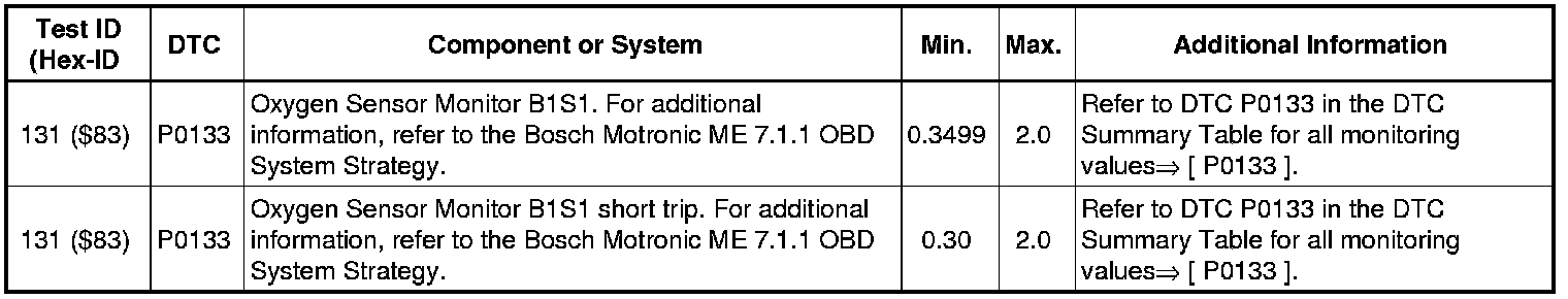 OBDMID 01 ($01): Oxygen Sensor Monitor Bank 1 - Sensor 1