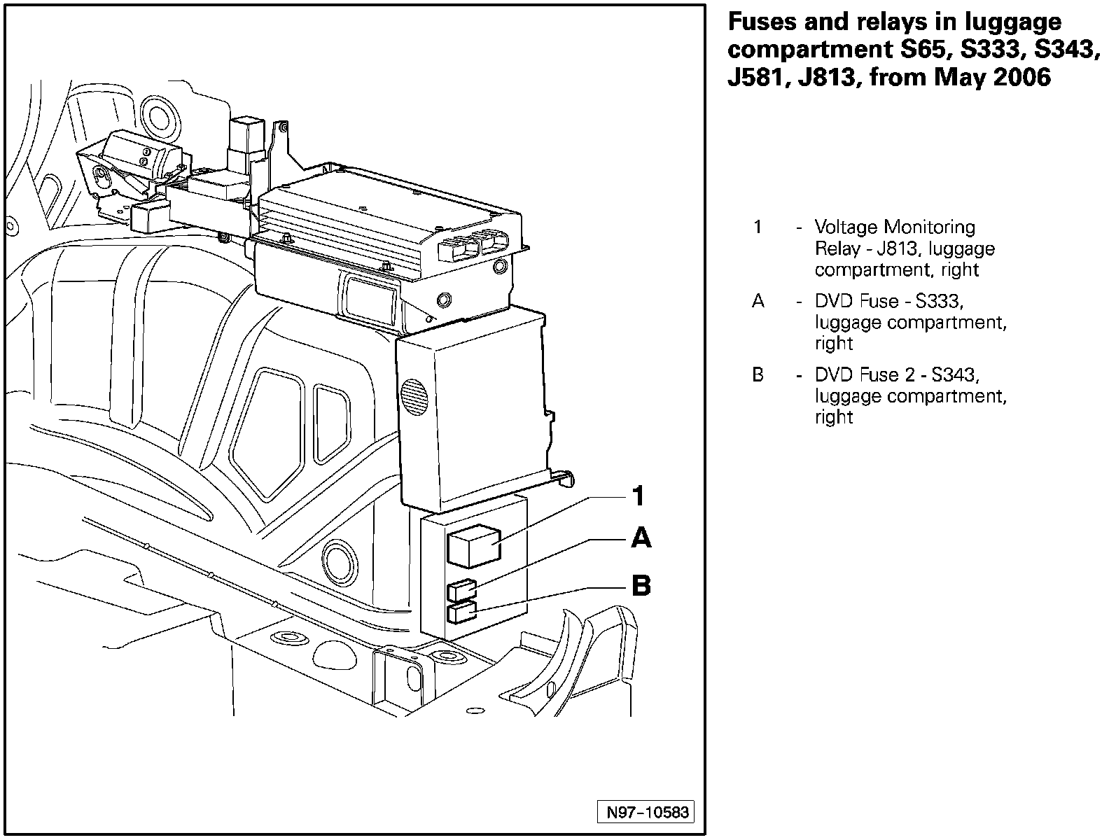 Fuses And Relays In Luggage Compartment S65, S333, S343, J581, J813: