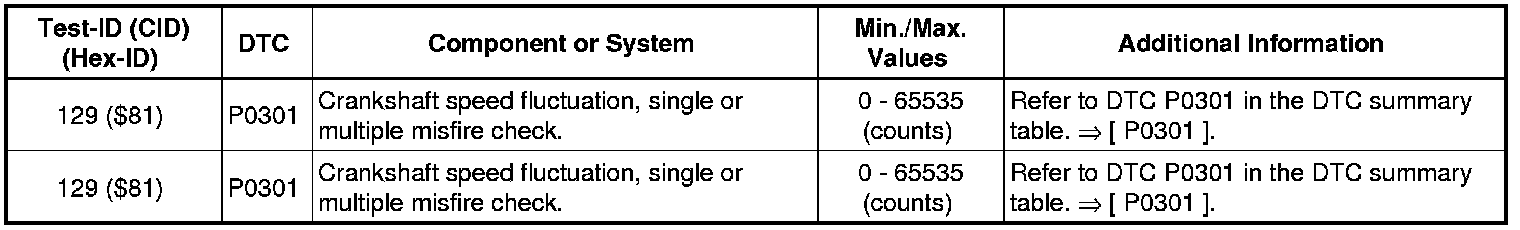 Test-ID 162 ($A2): Misfire Cylinder 1 Data