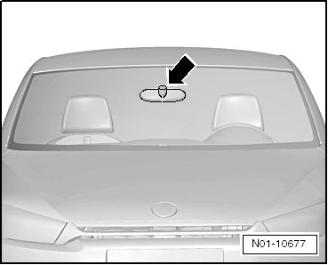 Rain/Light Recognition Sensor is located in upper center area of front windshield - arrow -.