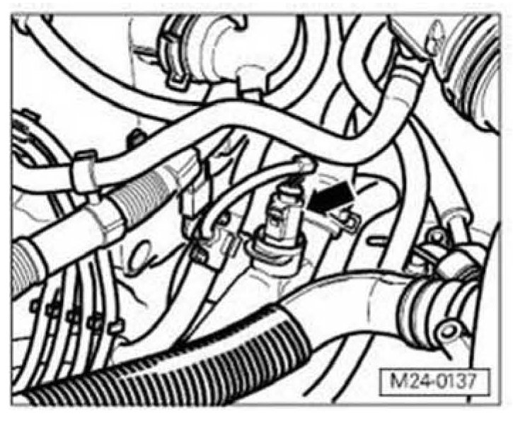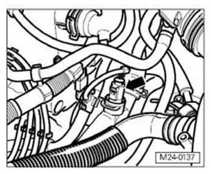 ^ Disconnect 4-pin connector from Engine Coolant Temperature (ECT) Sensor -G62- (arrow).