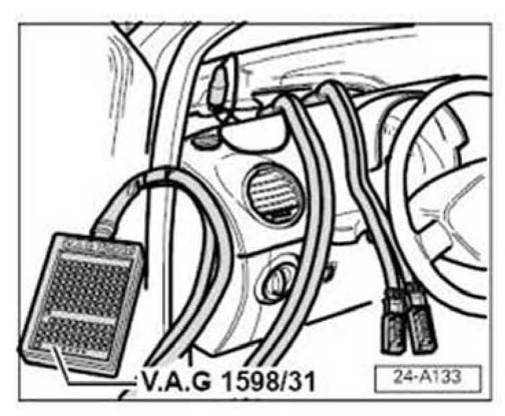^ Bridge VAS 5258 test probes 3 + 4 using auxiliary cables from VAG 1594C and observe display.