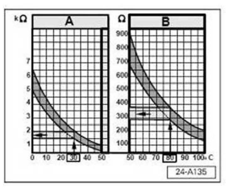 1) If a temperature is displayed which deviates greatly from the ambient temperature of the sensor; -G62- sensor or its wiring have high resistance or a short to B+.