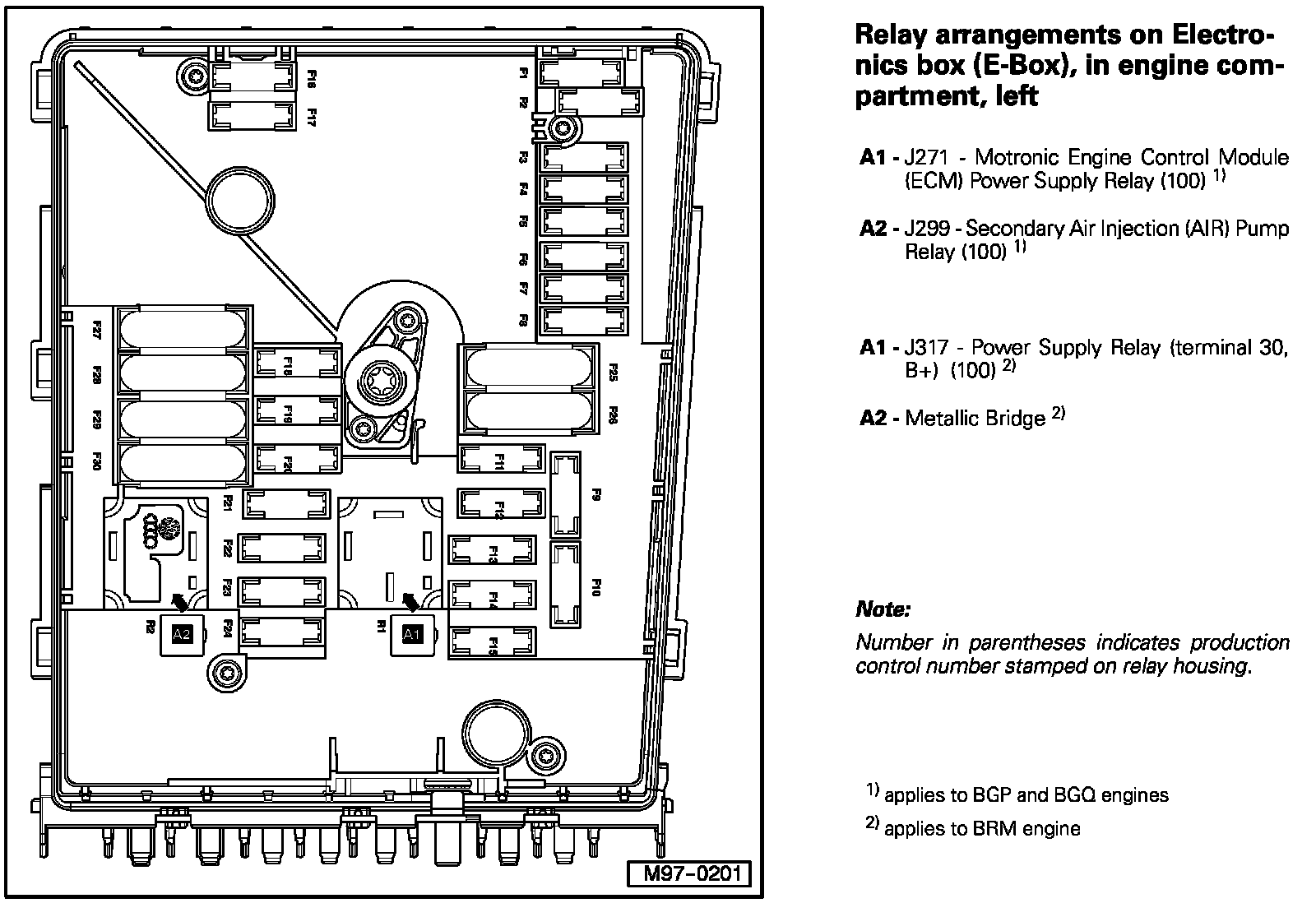Relay Arrangements On Electronics Box (E-Box), In Engine Compartment, Left: