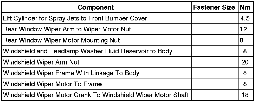 Wiper and Washer Systems: Specifications