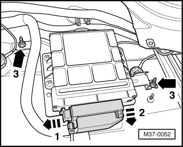 • Harness connector of control module may only be disconnected or connected 30 seconds after ignition is switched off.