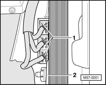 - Remove wiring harness at bellows - 1 - out of A-pillar between door and A-pillar.