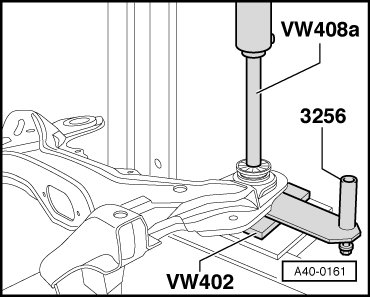It is only possible to remove and install bonded rubber bushings with subframe removed, removing subframe => [ Subframe ] Subframe.