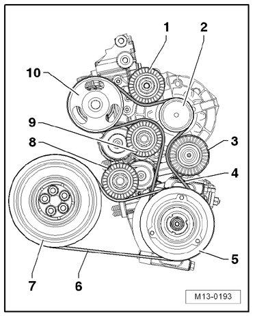 - Route ribbed belt according to diagram