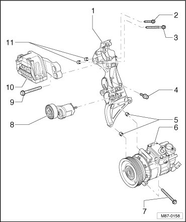 - Remove A/C compressor from bracket and secure to body with appropriate material (e.g. welding wire) => [ A/C Compressor, Securing to Body ] A/C Compressor, Securing to Body