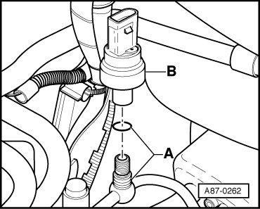 - Remove by turning switch/sensor - B - counterclockwise (switch/sensor threaded onto refrigerant pipe equipped with Schrader valve).