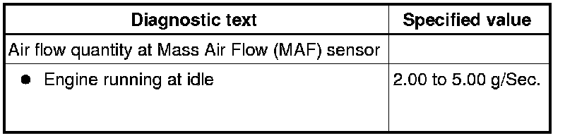 - Using the scan tool, Check the air flow quantity of the Mass Air Flow (MAF) Sensor (G70) at idle: