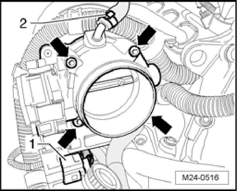 - During replacement, erase adaptation values and adapt Engine Control Module (ECM) to throttle valve control module Vehicle Diagnosis, Testing and Information System VAS 5051 "Guided Functions".