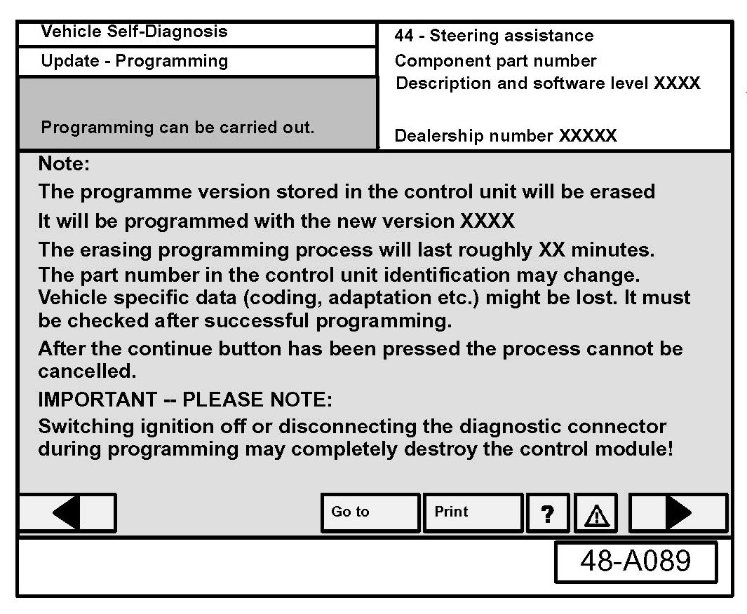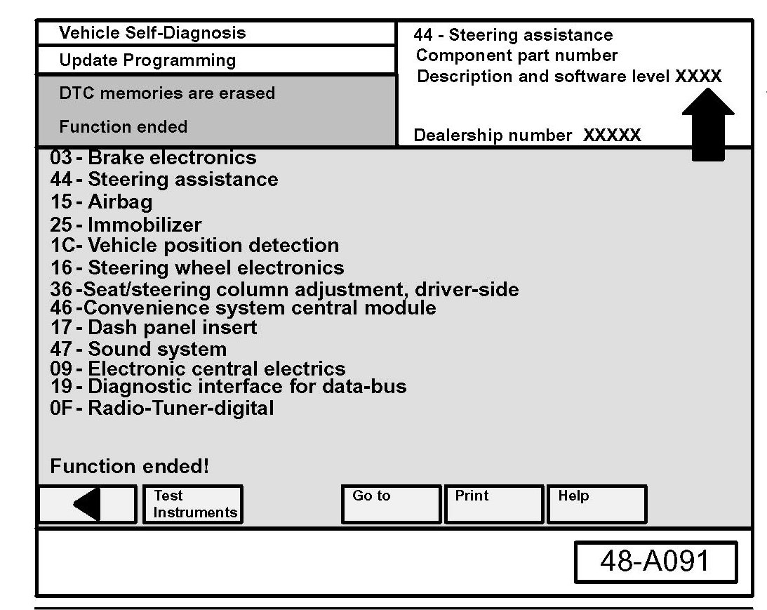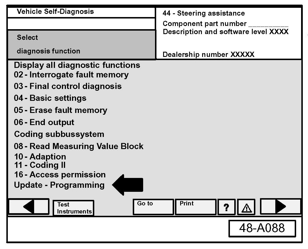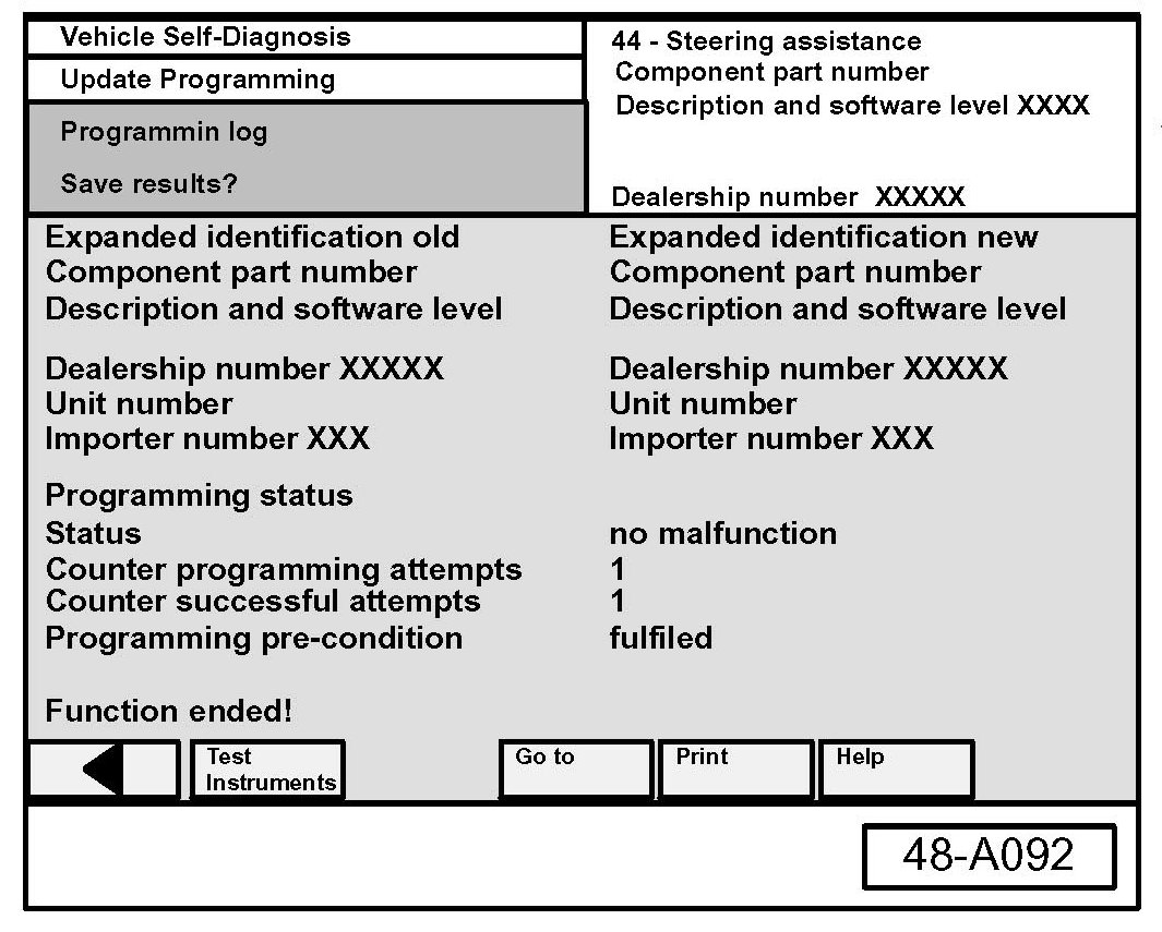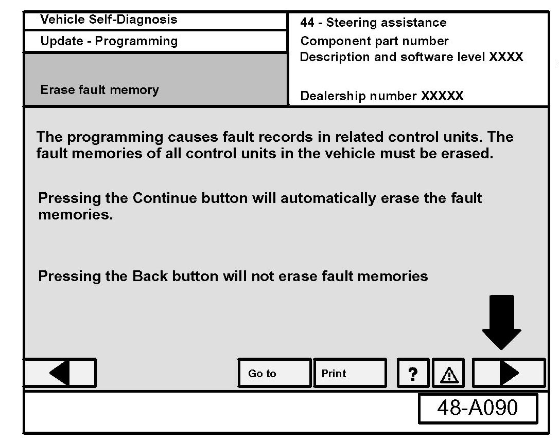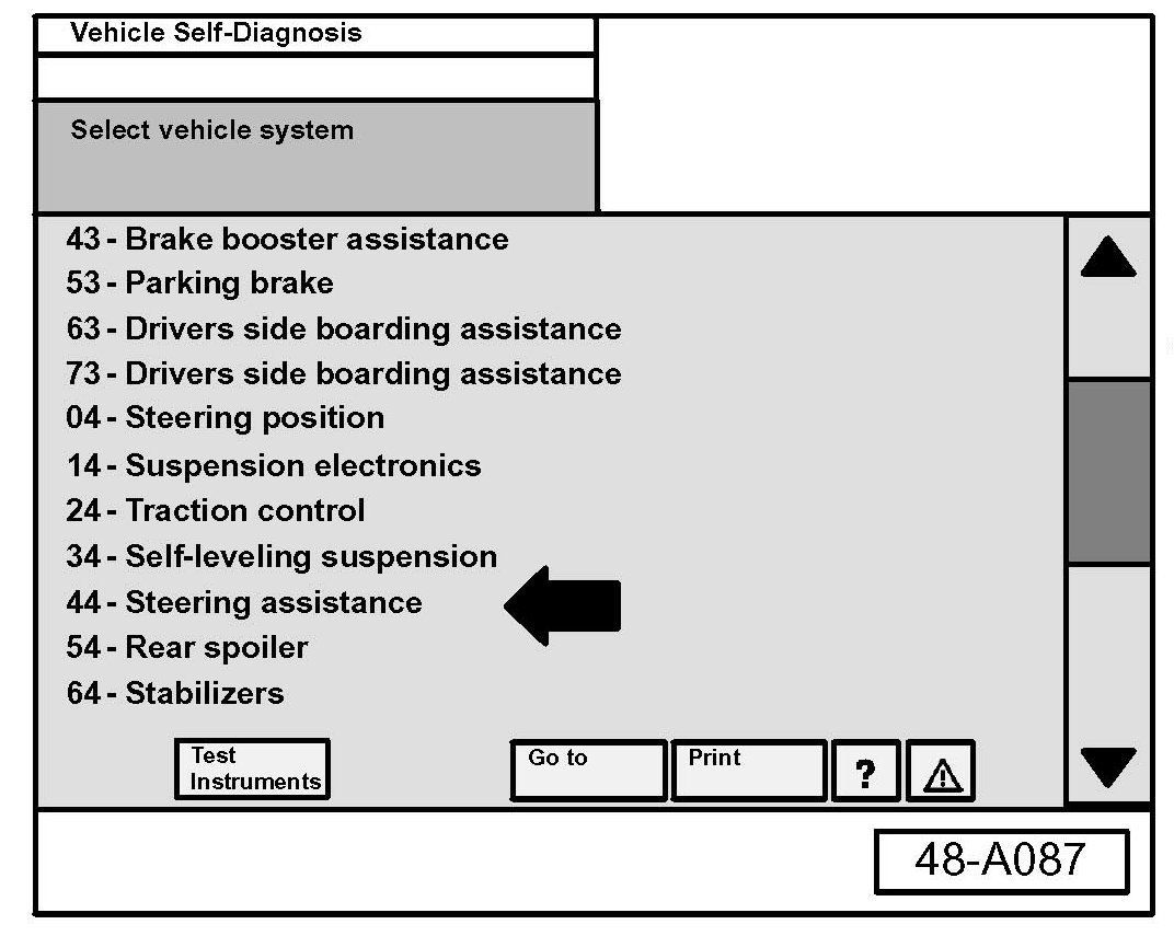- Navigate to Vehicle Self Diagnosis AW 44-Steering assistance.