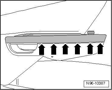 - Release retainers - arrows - and remove switch element - 1 - from grip trim.