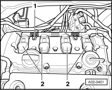 Spark plugs are located under ignition coils with power output stages - 2 -.