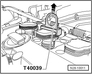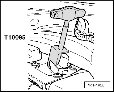 - Then place Puller (T10095 A) on ignition coils with power output stages and remove them.