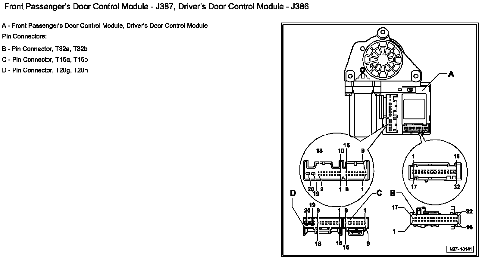 Front Passenger's Door Control Module - J387, Driver's Door Control Module - J386: