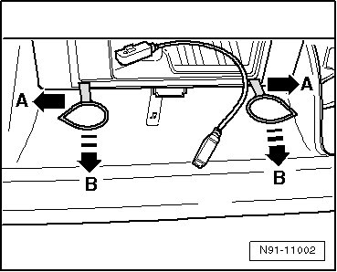 - Press the tools in direction - A - and pull the control module in direction - B -.