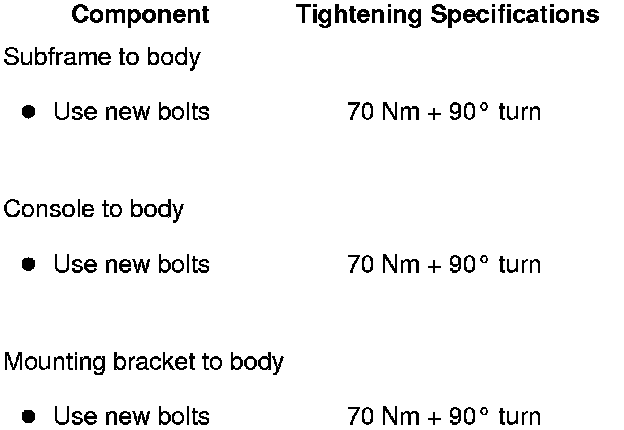 - Replace the bracket bolts one after the other with (T10096 ) and tighten to 20 Nm.