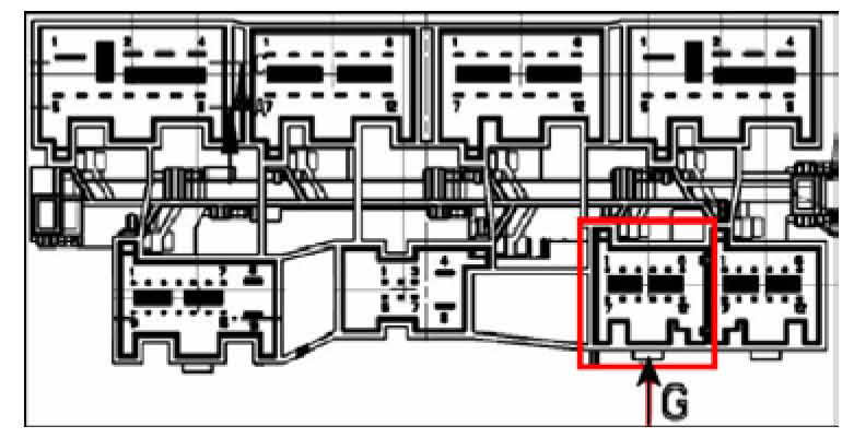 Connector G located on top of Vehicle Electrical System Control Module -J519-, -arrow-.